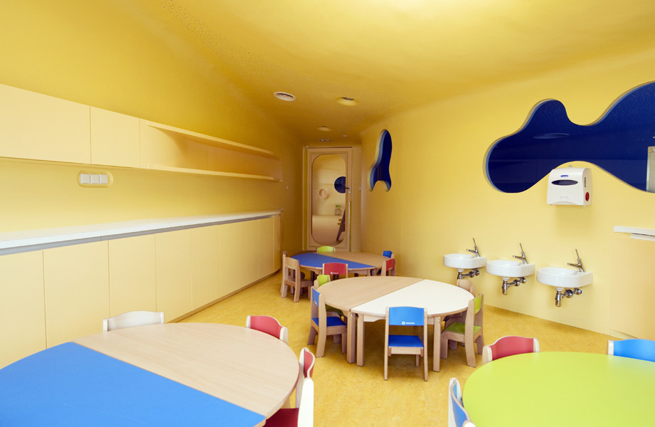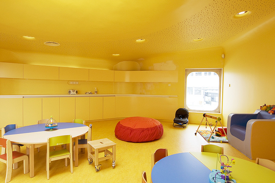 這個日托機構主要面對嬰兒而非兒童,所以要研究家長與工作人員的行為和情感,在建筑設計中綜合考慮嬰兒被保護、被關懷的需要。