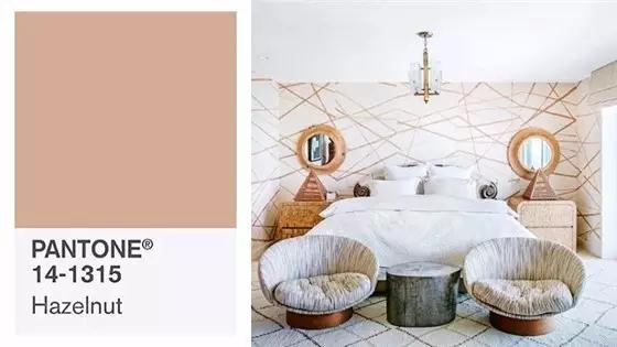 近似淺啡色的臻果褐,也是春季中常見的顏色,最適合崇尚自然和低調的女生穿搭,舉手投足也散發優雅的感覺;家居小物也處處散發森系氣息。相信這款顏色會連續流行幾季。謙遜和穩定的溫暖,榛果色將毫不費力地迎接下1個季節的過渡色。(幼兒園設計