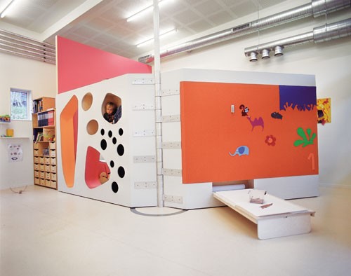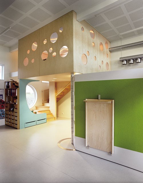 “室內街道”邊的小樓梯將孩子們引入一個空間舒適的小閣樓,完全是適合孩子們的非常小的尺度。
