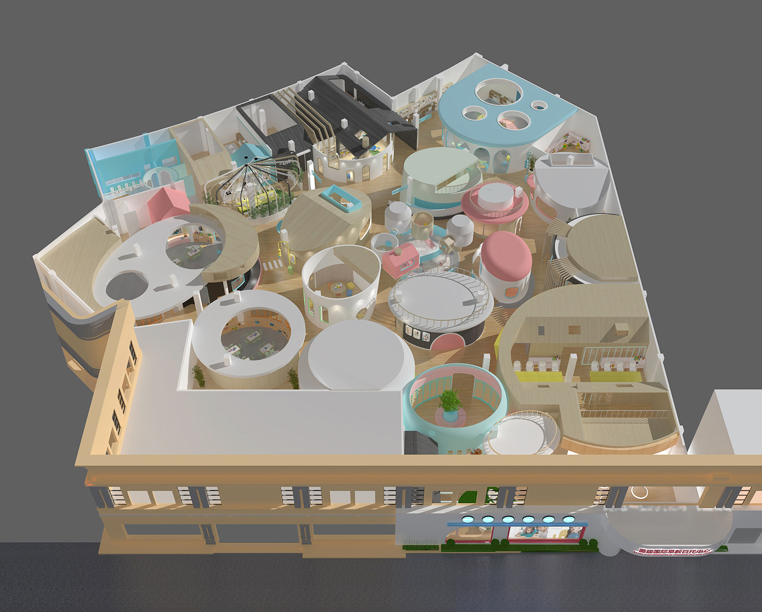 場地總面積有2000㎡,充分的條件讓我們能夠將“城市建筑”這個宏觀的概念和很多設想落地。如果將番趣兒童成長中心看作一座城,我們該怎樣去搭建城市?